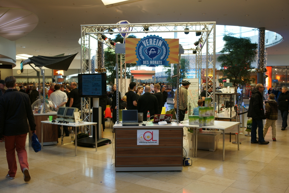 Daher haben wir am 23. November 2013 auf den Weg in das Einkaufszentrum gemacht, um den Preis entgegenzunehmen und uns einen ganzen Tag lang den Besuchern zu präsentieren. Ein großer Messestand, Tische und Stühle wurden uns gestellt und wir durften alles mit Leben füllen.