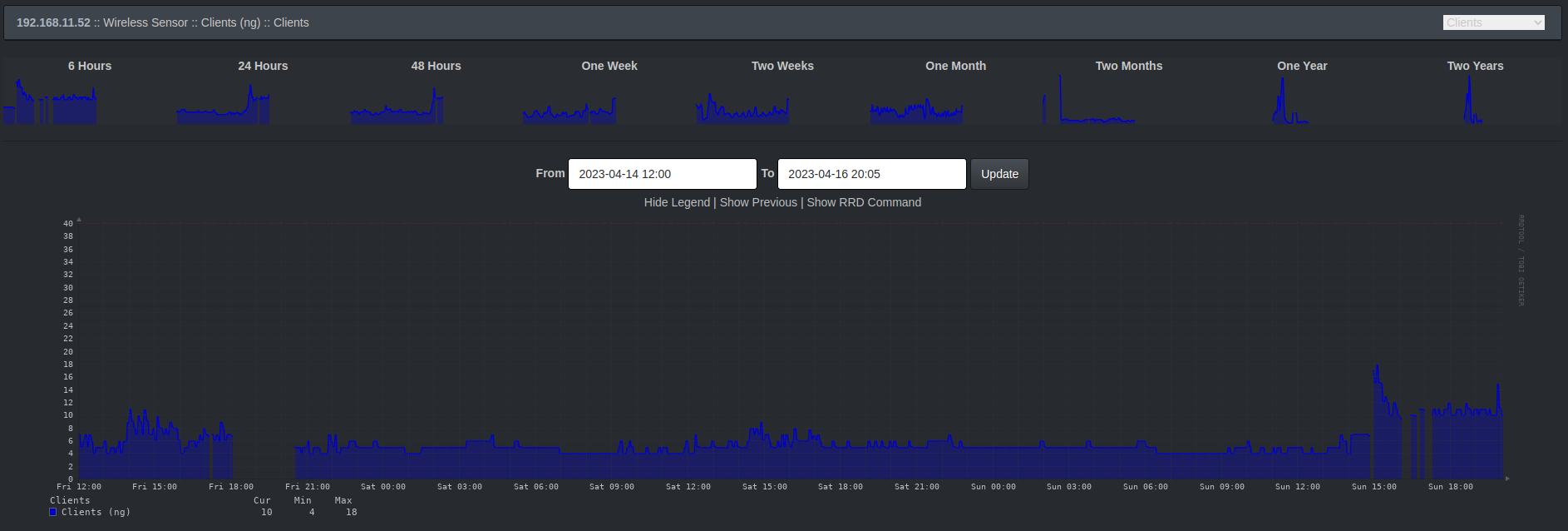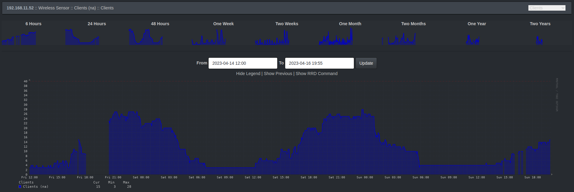 Der Access Point in der Lounge hat sichtbar mit Beginn der LAN Party immer mehr Clients aufgenommen. Es freut uns, dass hier primär das 5 GHz aktiv ist und nur wenig bis keine Geräte sich in das legacy 2.4 GHz Band verbinden.
