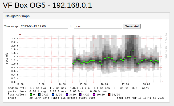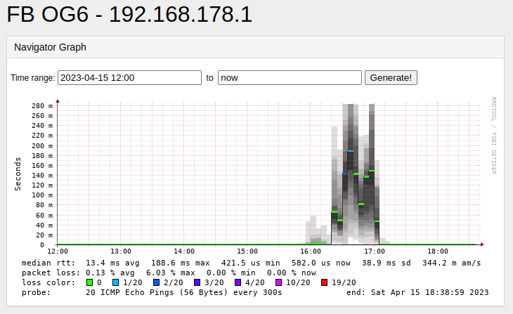 Nach bisheriger Diagnostik macht das Modem vom Provider schlapp, sobald es mit viel Internettraffic umgehen muss und hat mit stark erhöhten Latenzen zu kämpfen.
