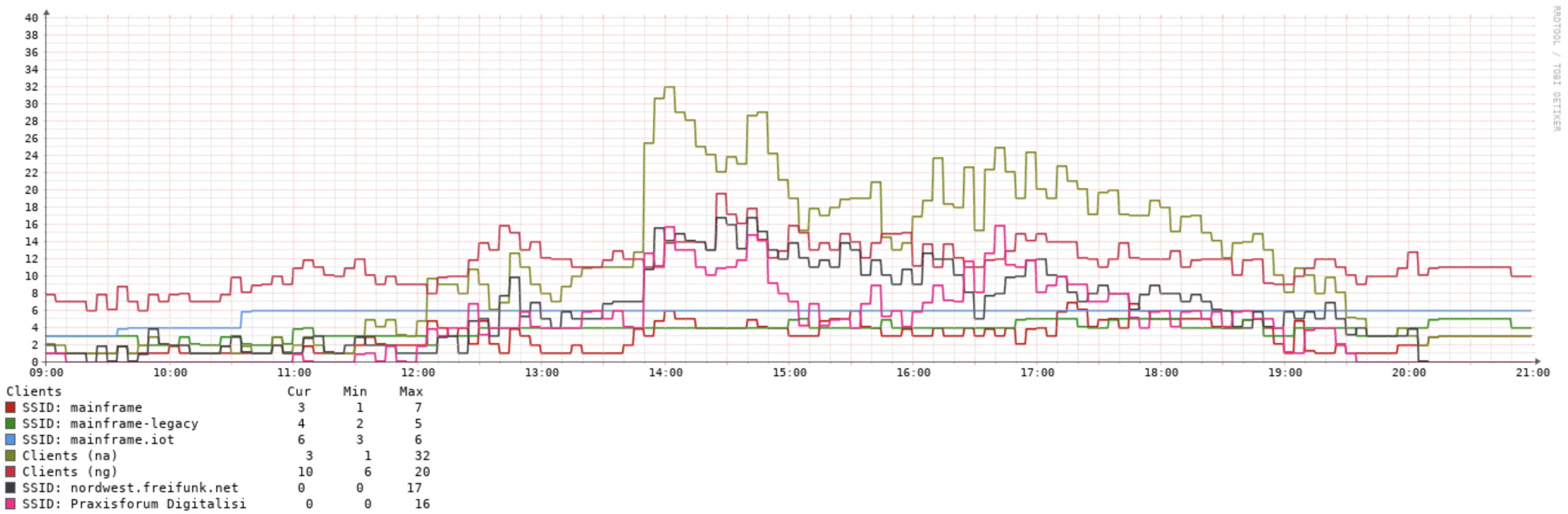 Als Fazit lässt sich sagen, die Vorbereitungen haben sich ausgezahlt. Die Infrastruktur blieb stabil und hat trotz der hohen Menge an Clients auf engem Raum gut funktioniert.