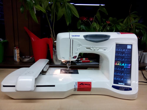 Wir haben im Space auch eine computergesteuerte Stickmaschine, mit der – ähnlich wie beim Nähen – mit Nadel und Faden Motive auf ein Stück Stoff aufgestickt werden können.