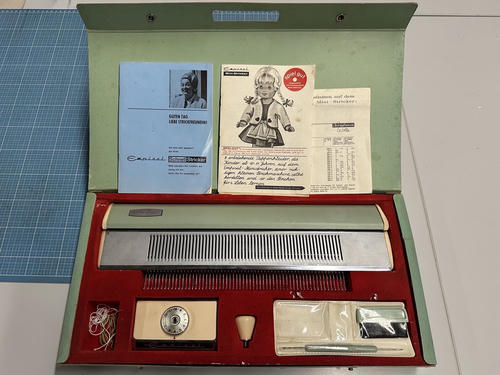 Aktuell sind es drei funktionsfähige Maschinen: Eine große Doppelbett-Maschine von Singer (Singer Memo II), die auch programmiert werden kann, und zwei einfachere Empisal-Schnellstricker (einmal in der normalen und einmal in der Mini-Variante).