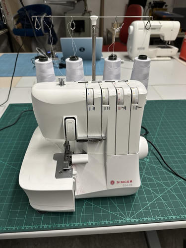 Overlock-Nähte sind flexibel, sauber und eignen sich gut für Kleidung. Wir haben eine Overlock-Maschine von Singer im Space.